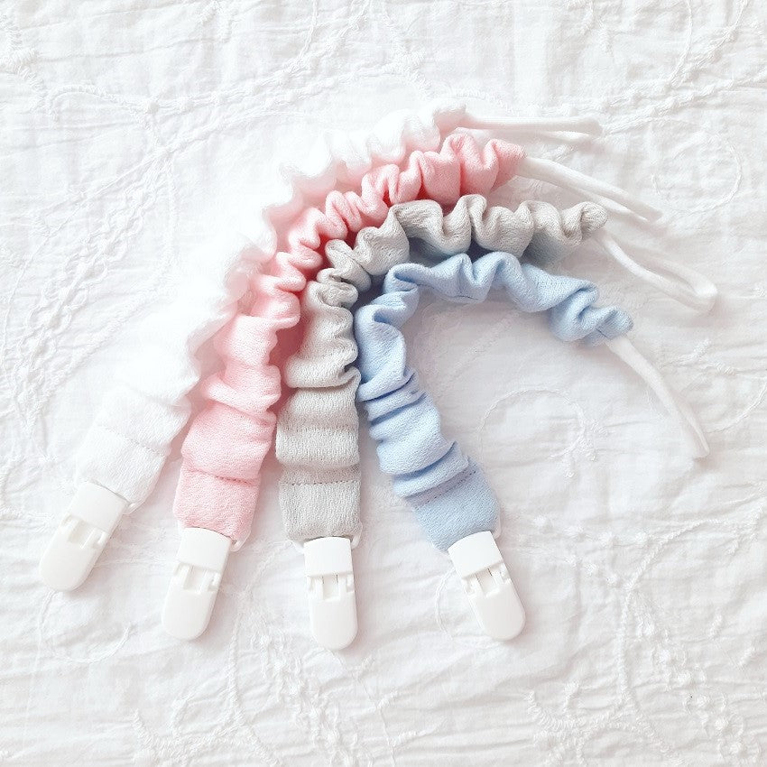 The distinctive feature of this pacifier clip? It's crafted with the cotton fabric used in baby swaddles, making the pacifier clip exceptionally soft and ensuring a unique level of comfort!