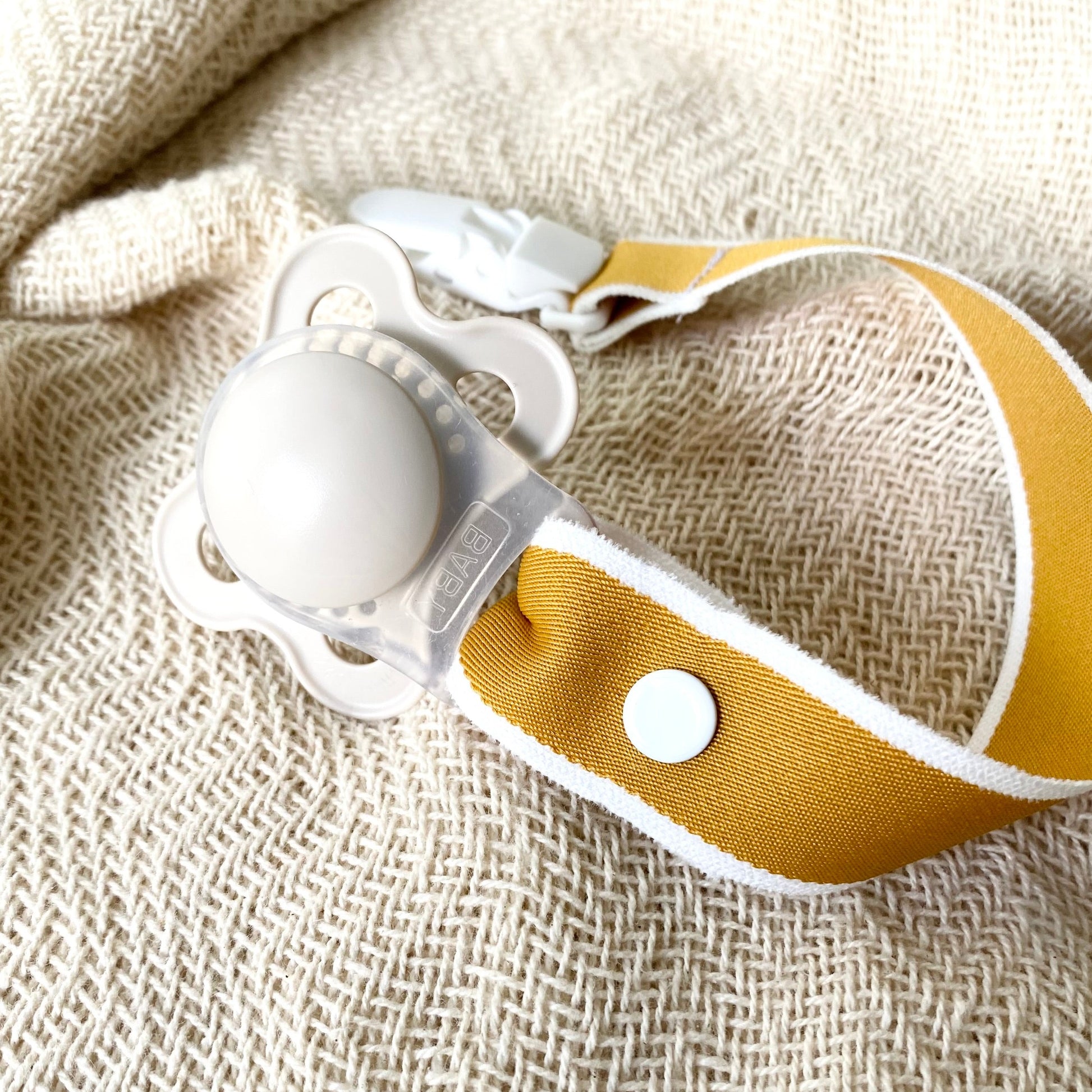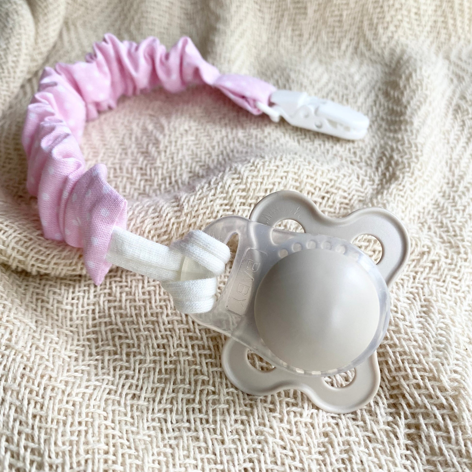 Your baby uses a button-style pacifier, making it challenging to use our pacifier clips? We have the solution!