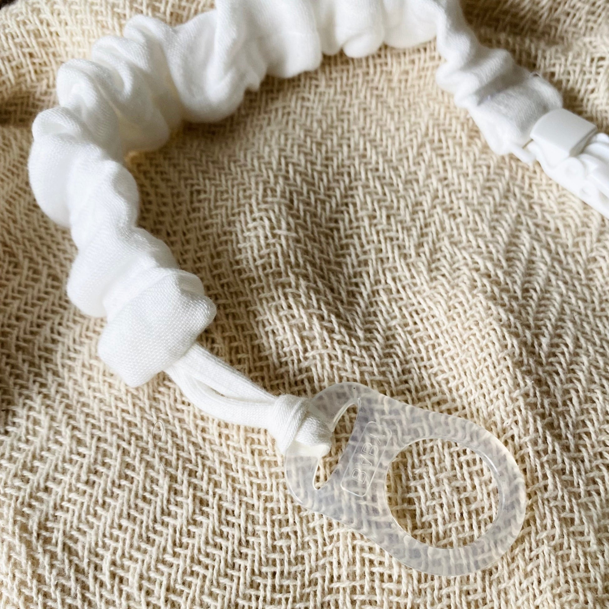 With this transparent and discreet silicone adapter, you can attach any model of our pacifier clips to a button-style pacifier. Silicone is a strong and flexible material that stretches to adapt to various types of pacifiers.