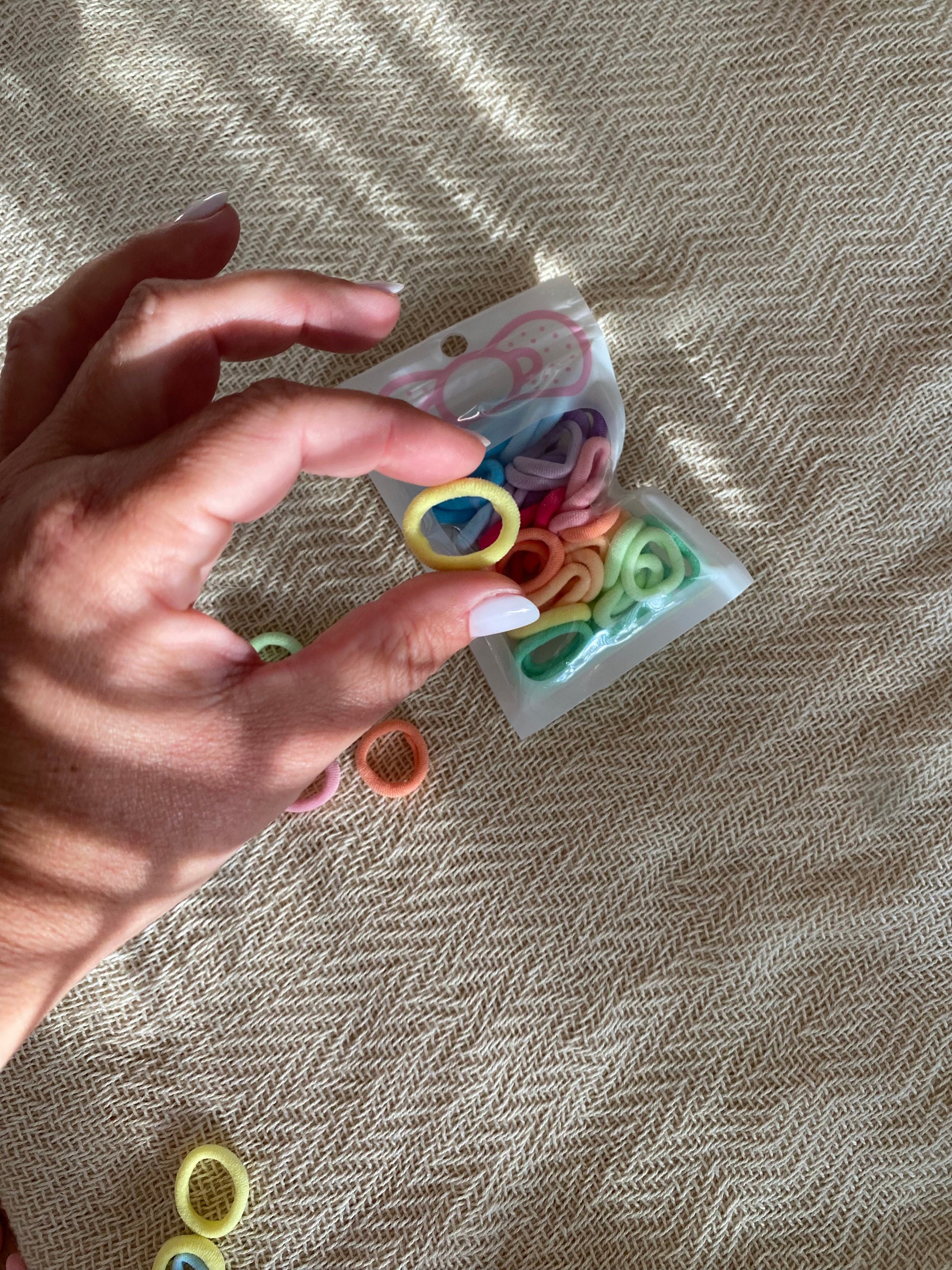 Pack de 44 Mini Elásticos: ideal para crianças e bebés. Tamanho pequeno mas bastante maleáveis, perfeitos para totós em cabelo fininho!