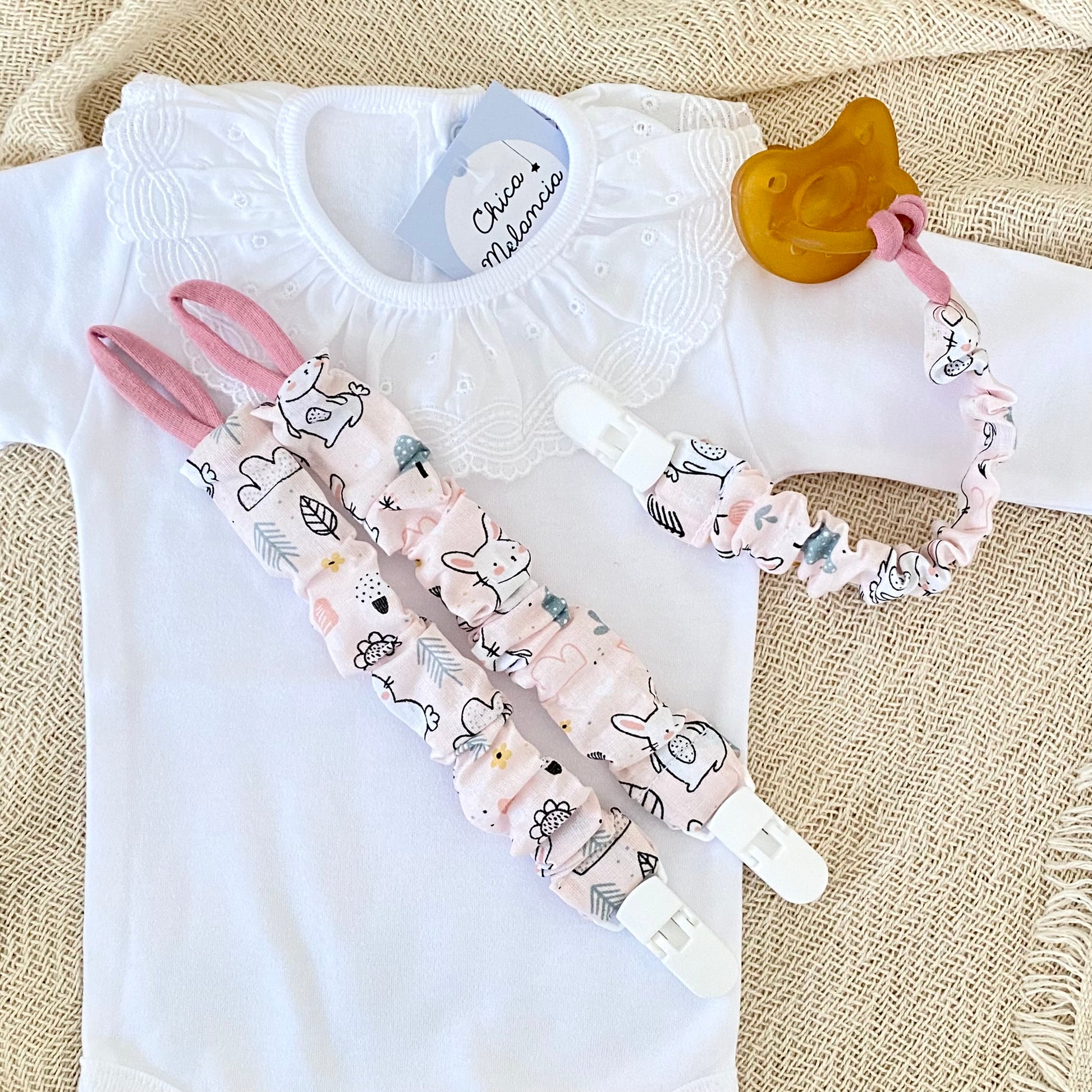 Did you know that all our paci clips are hand sewn in Portugal by our meticulous seamstress? So keep in mind there can be slight variations!
