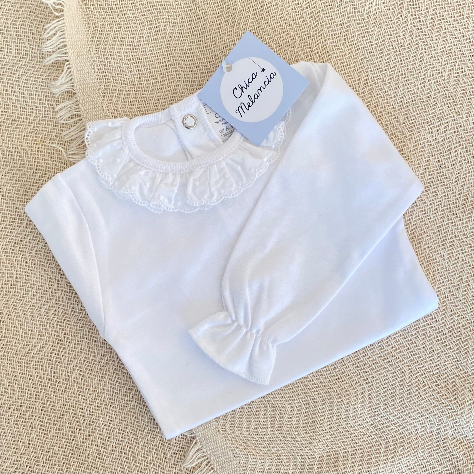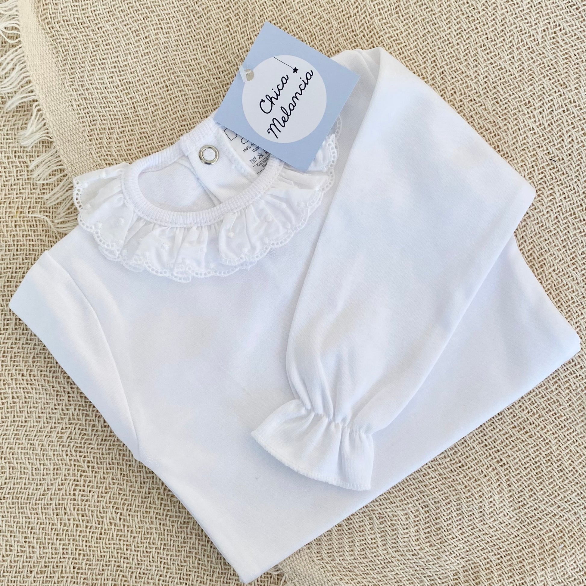 Body em Algodão com Golinha em Tecido Plumetti Branco Bordada - um item indispensável no armário do seu bebé!