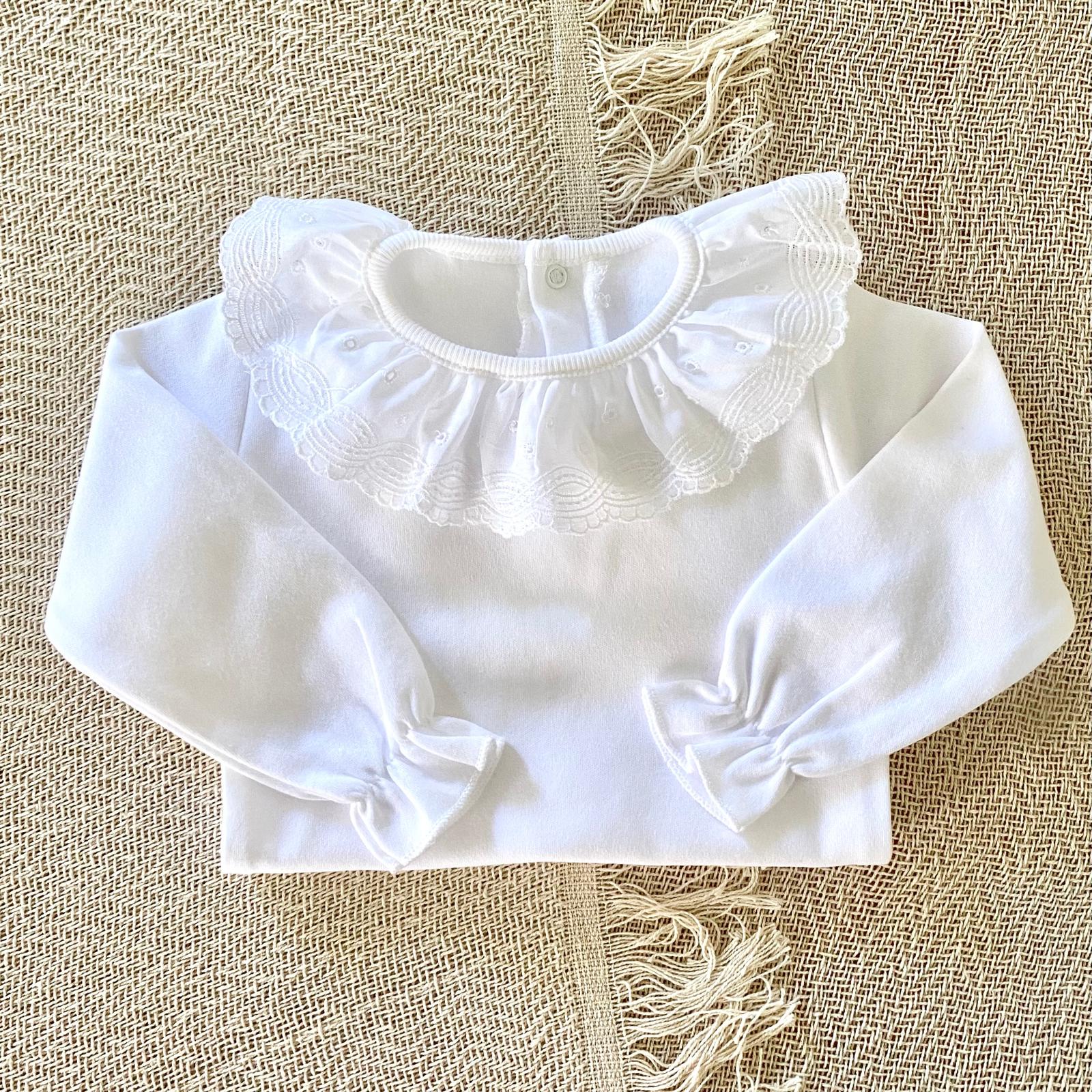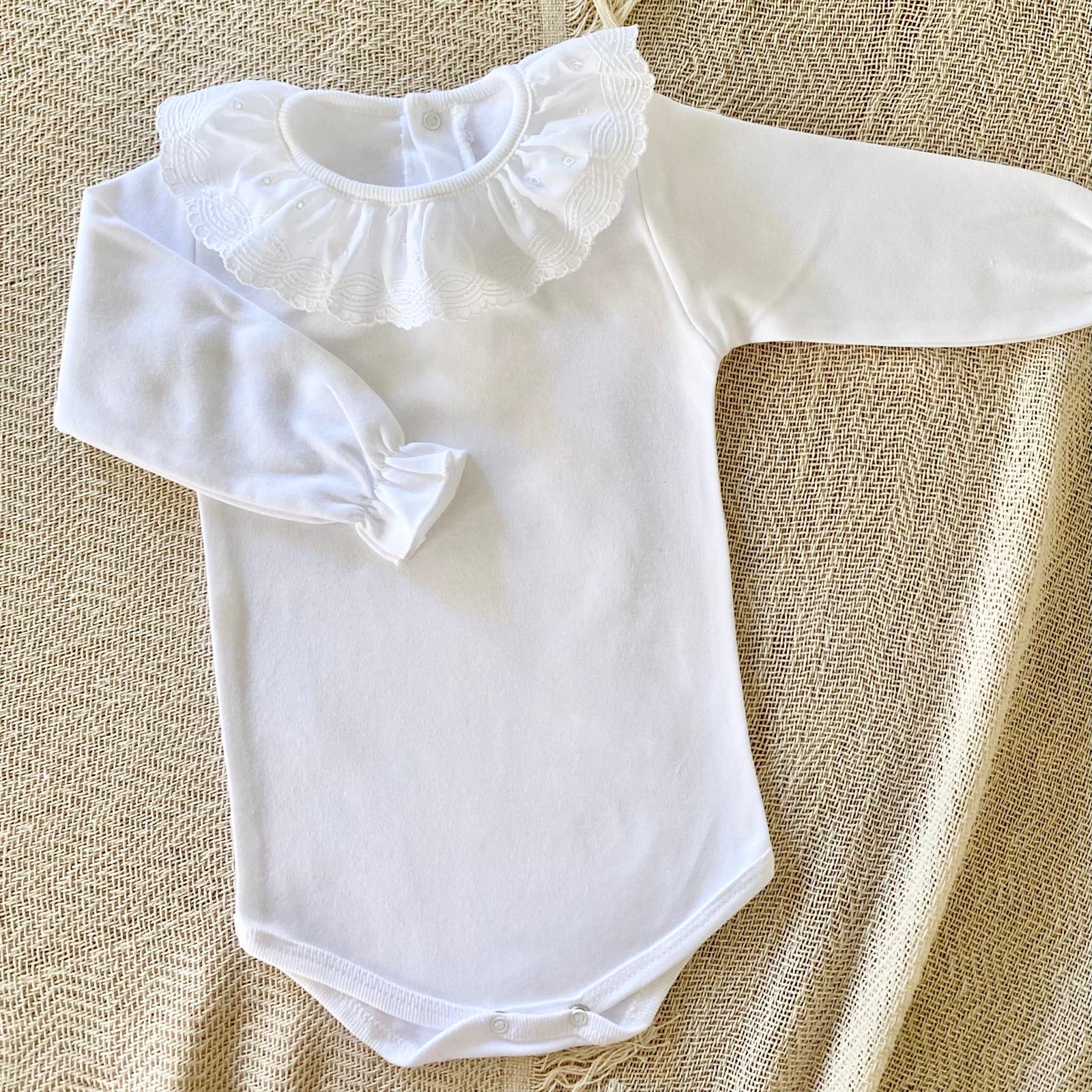 Body em Algodão com Gola em Tecido Branco Bordada - um item indispensável no armário do seu bebé!