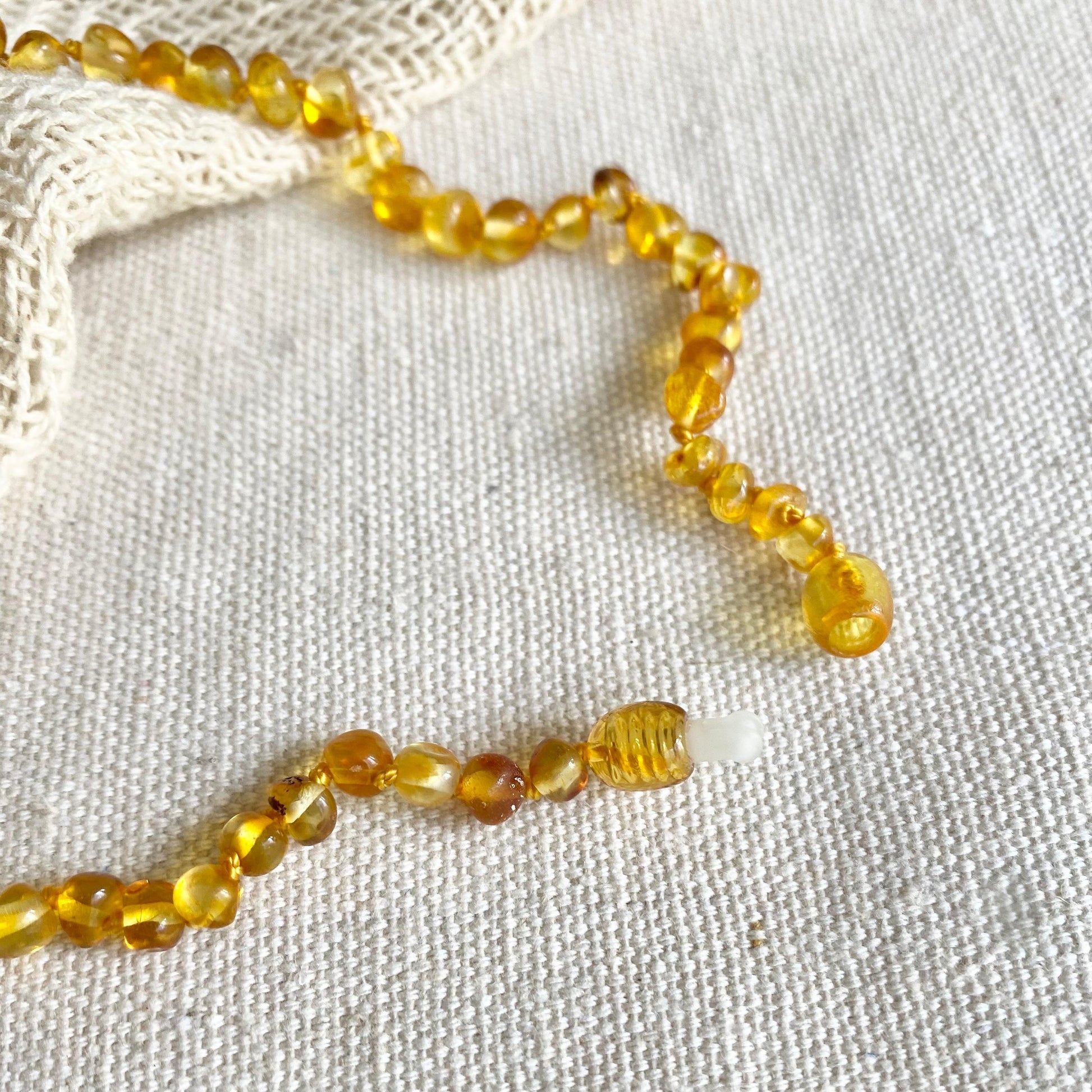 Nuestros collares están elaborados por artesanos certificados con auténticas cuentas de ámbar báltico. Con una longitud de 32-33 cm, son ideales para bebés a partir de 3 o 4 meses.