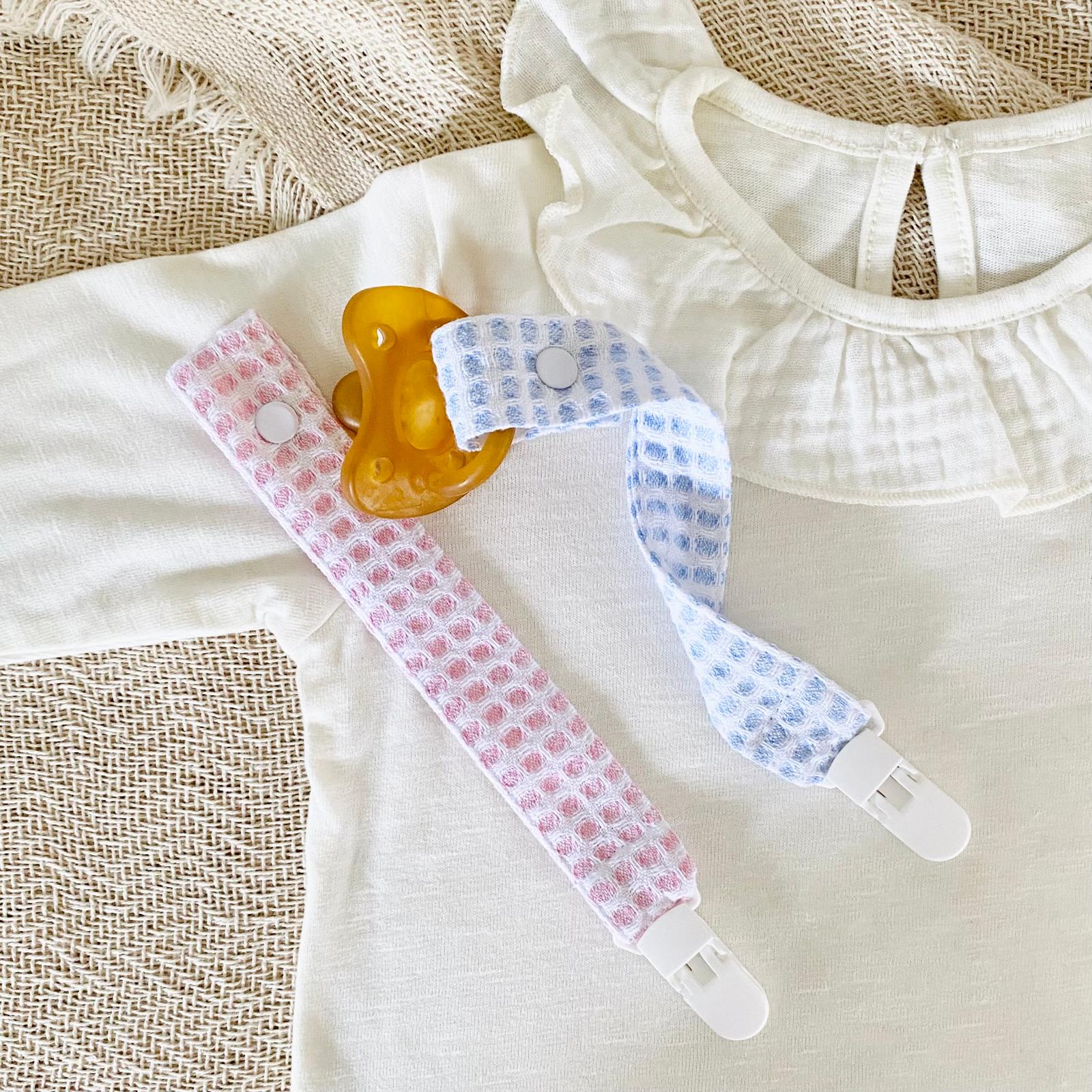 Con nuestro Chupeteros, mantén siempre el chupete de tu bebé a mano y lejos del suelo.